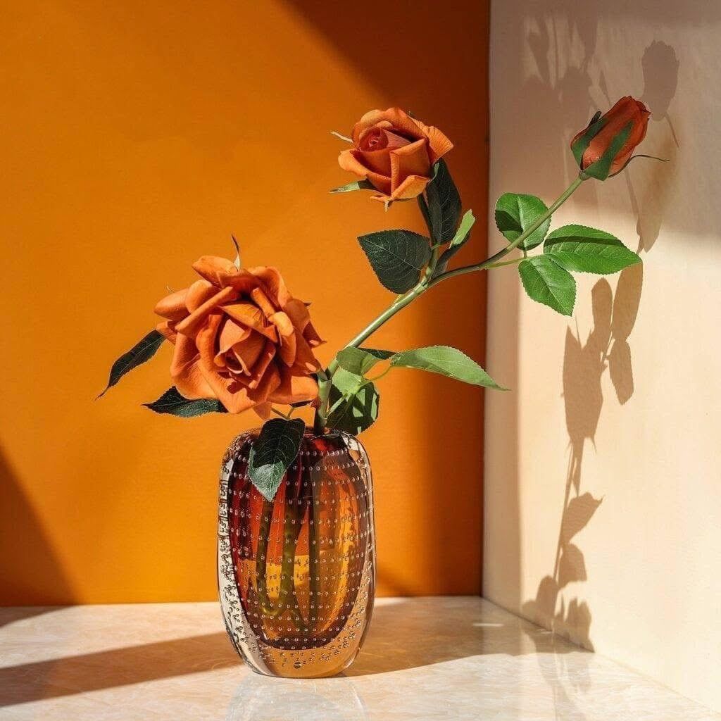 - Kiểu dáng đơn sắc, đường nét thanh lịch và đơn giản, bình hoa với nhiều bông hoa tạo nên bầu không khí yên bình, tạo nên vật trang trí nhà nhỏ nhắn và tinh tế.