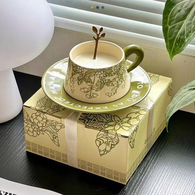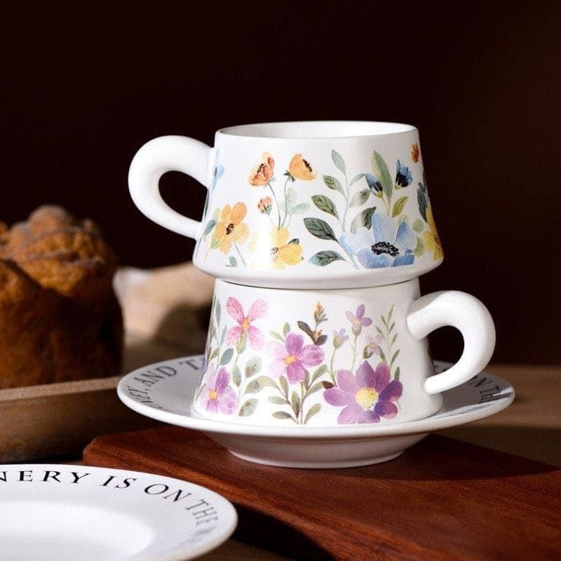 👉Kích thước: Tách dung tích 250ml đk 8,5x7cm; đĩa đk 16,5cm