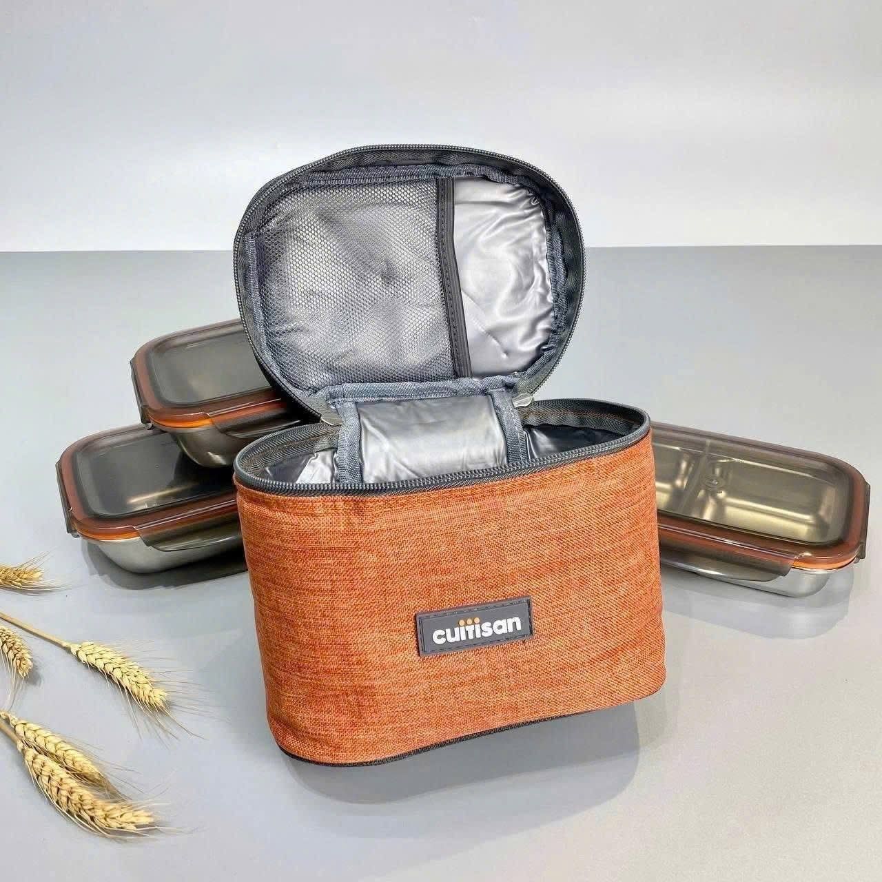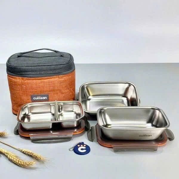 - Bộ hộp đựng cơm gồm 4 ngăn kèm túi bảo quản, sử dụng vật liệu Cromosteel™ 304 cao cấp để giữ nhiệt và kháng khuẩn