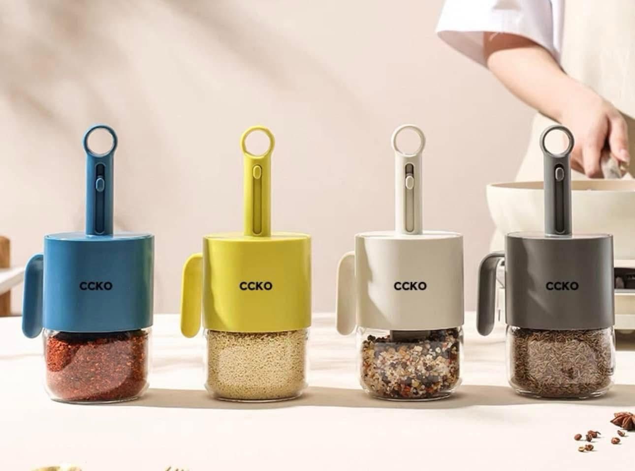 Set 4 hộp đựng gia vị kèm thìa chia ngăn CCKO xịn sò, mới tinh 2025 đang có giá sales siêu tốt ạ