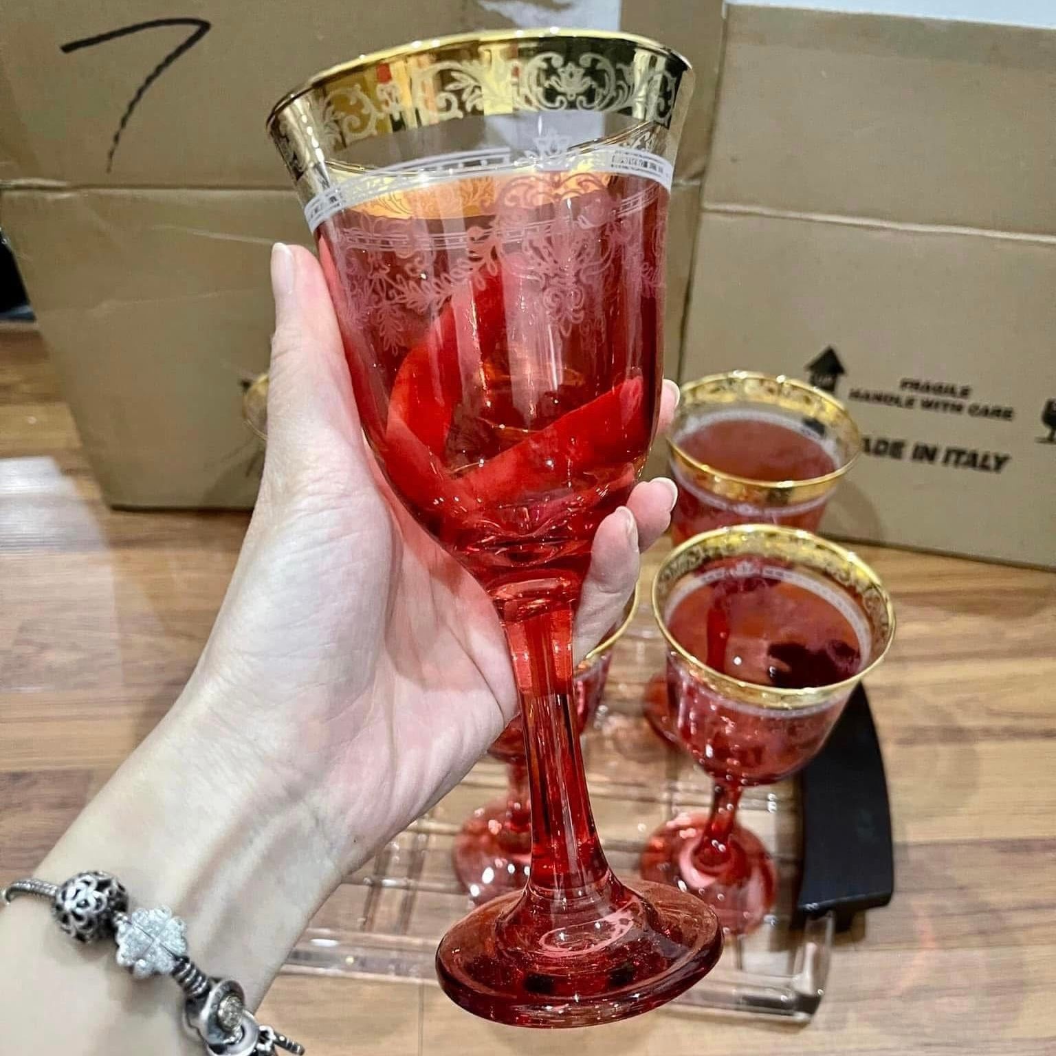 Bộ 6 ly vang Lorenzo màu vàng và đỏ hổ phách sang xịn - Made in Italy