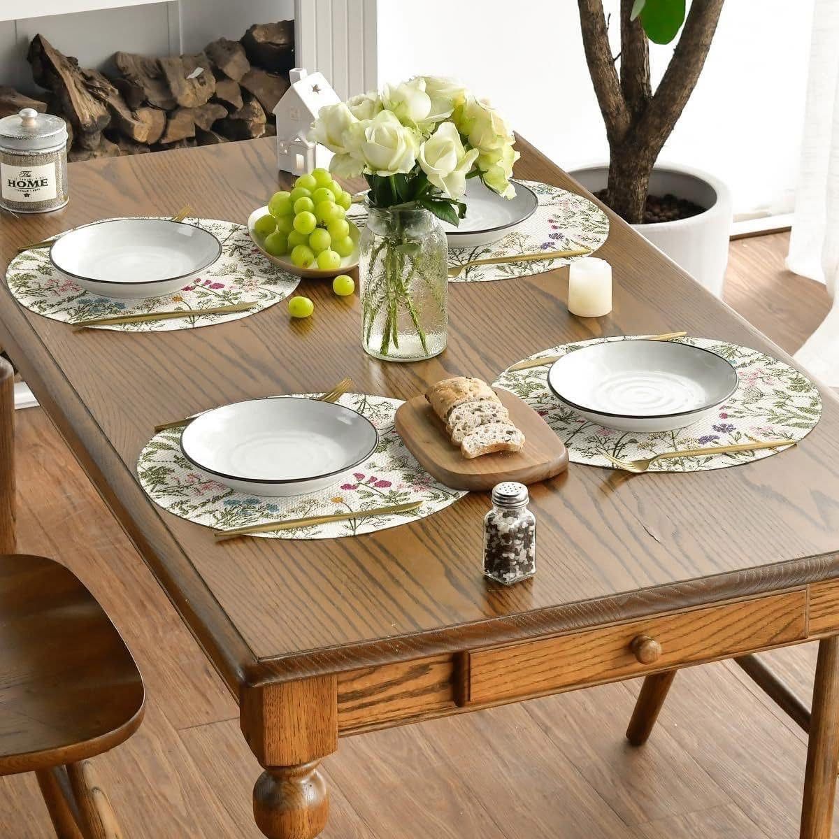 👉Các cạnh được viền và gia cố có thể giúp giữ cho miếng lót đĩa không bị sờn. Các họa tiết sống động làm tăng thêm nét quyến rũ cho miếng lót đĩa và thổi luồng gió mới vào phòng ăn của bạn, hoàn hảo để sử dụng trong nhà và ngoài trời.