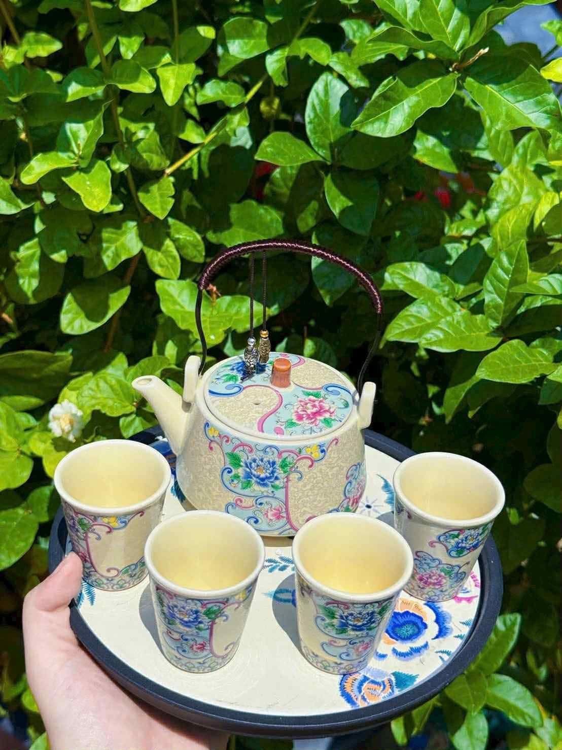 Set ấm chén kèm khay hoa văn chim lá cành!!!! Kèm khay luôn, khay trà không thấm nước! ☕️