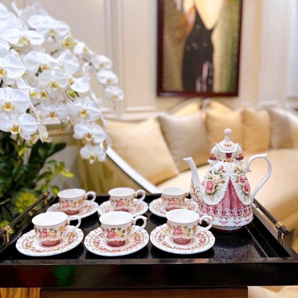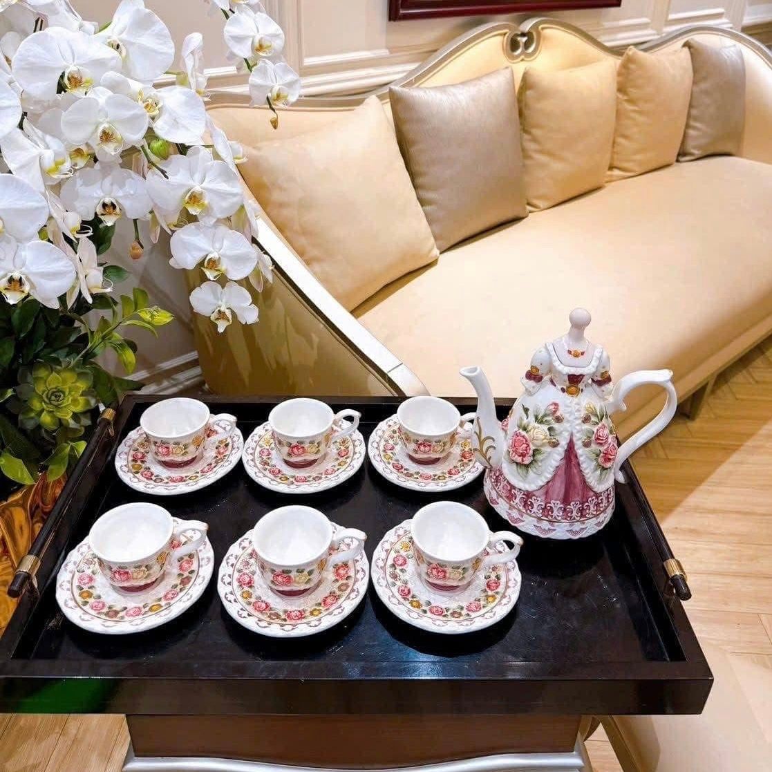 👉Bao gồm 1 ấm trà, 6 tách & 6 đĩa lót