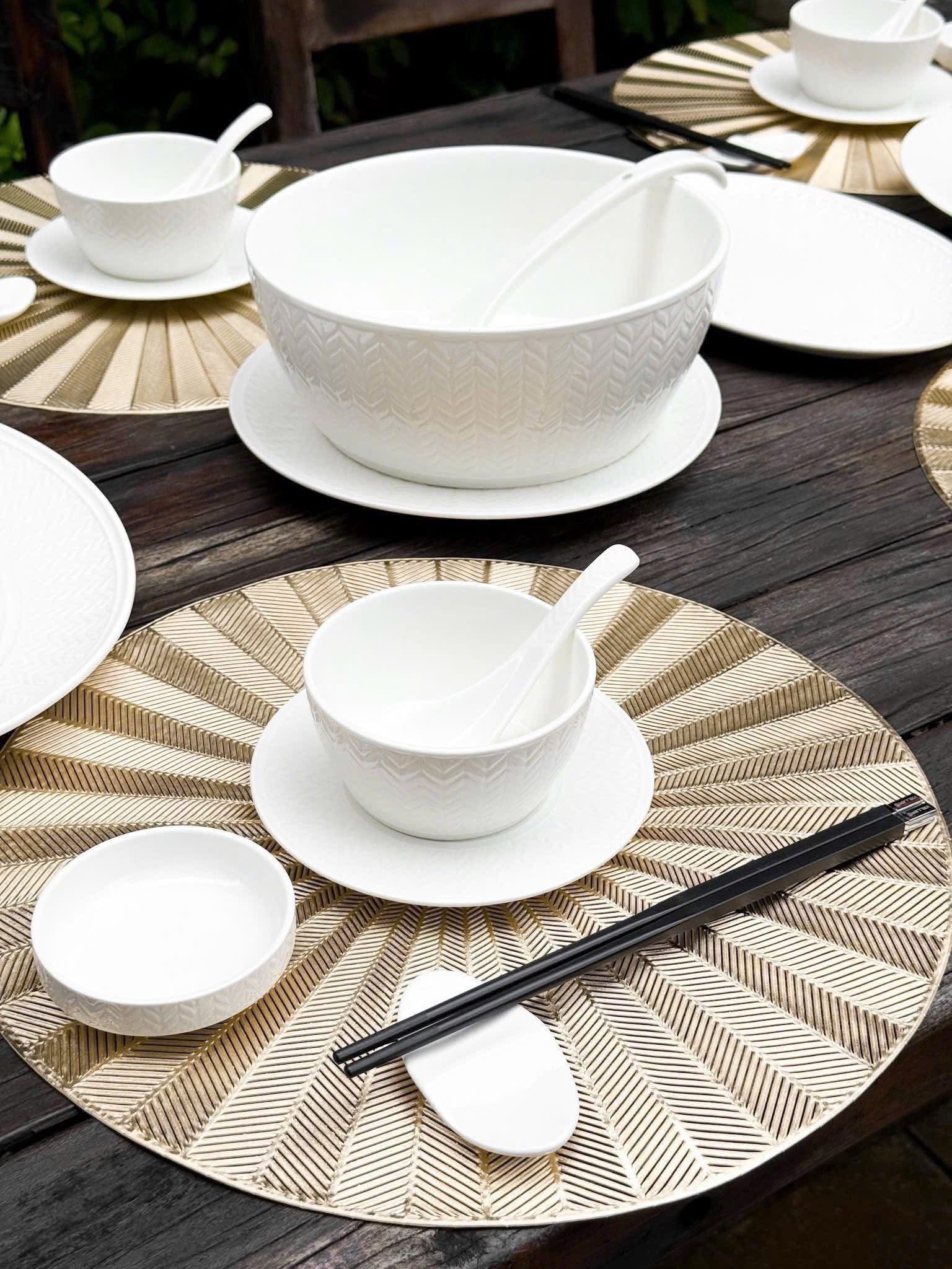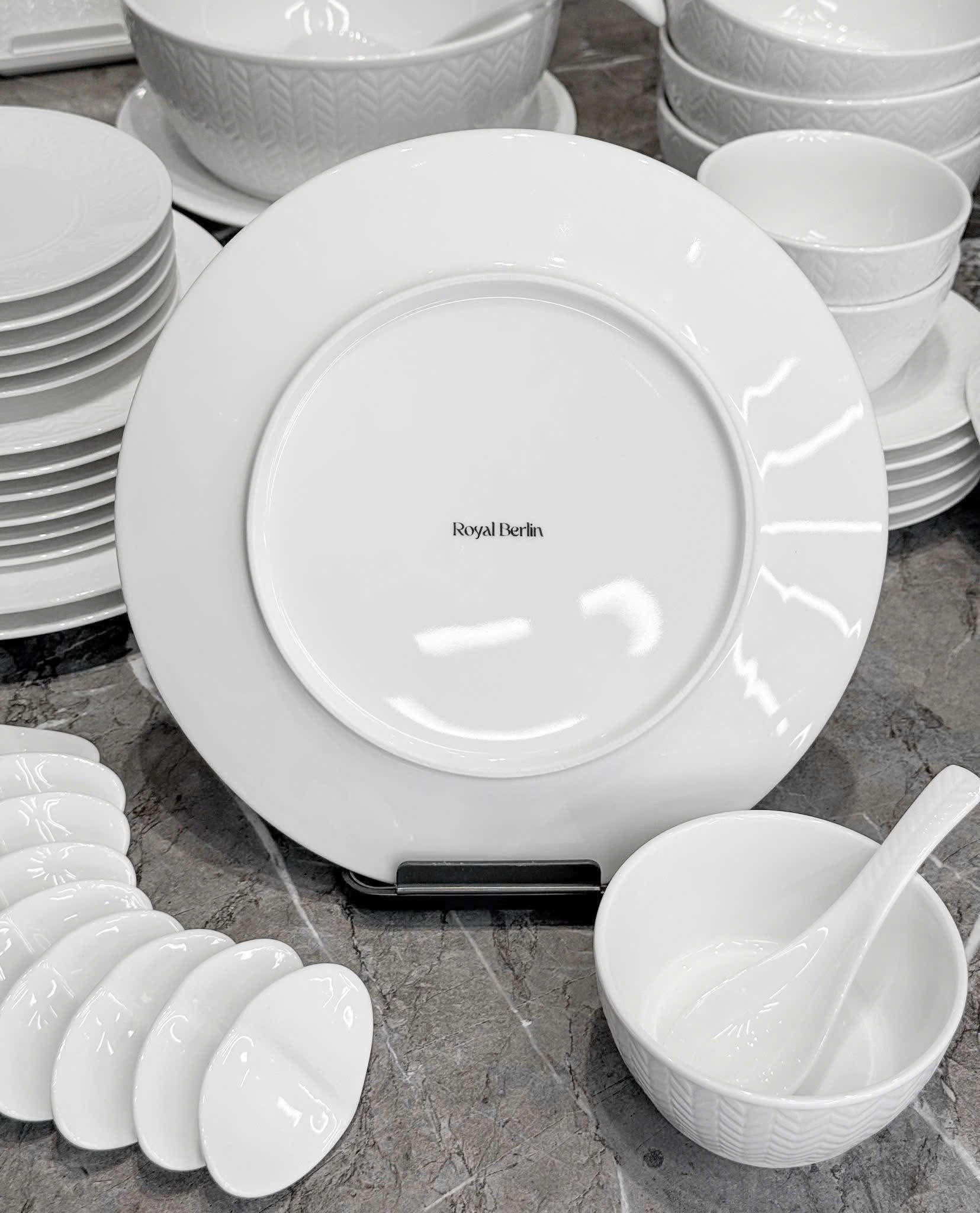 Bộ bát sứ Royal Berlin 72 món mang phong cách tối giản, sang trọng với gam màu trắng tinh khôi phục điểm xuyết vân hoa tinh tế. Dù là bữa cơm gia đình hay bữa tiệc chiêu đãi, Royal Berlin đều giúp bàn ăn thêm phần đẳng cấp và nổi bật.