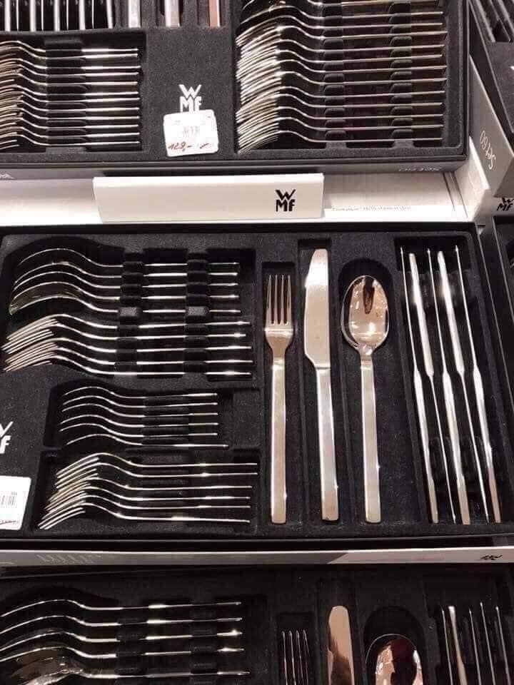 Việc sử dụng, bảo quản thiết bị nhà bếp dễ dàng hay không chịu ảnh hưởng bởi thiết kế. Bộ dao thìa dĩa Đức WMF Boston được thiết kế 100% inox cao cấp 18/10. Đây là loại inox được kiểm định chất lượng nghiêm ngặt. Inox dùng thiết kế Bộ dao thìa dĩa Đức WMF Boston được kiểm tra và sàng lọc chất lượng nhiều lần