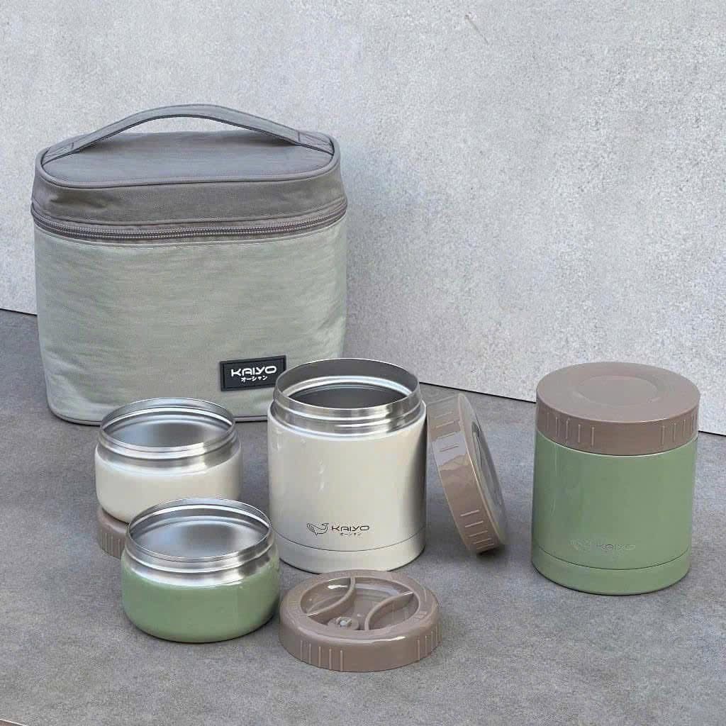Bộ hộp cơm giữ nhiệt 5 món Kaiyo (4 hộp + 1 túi)