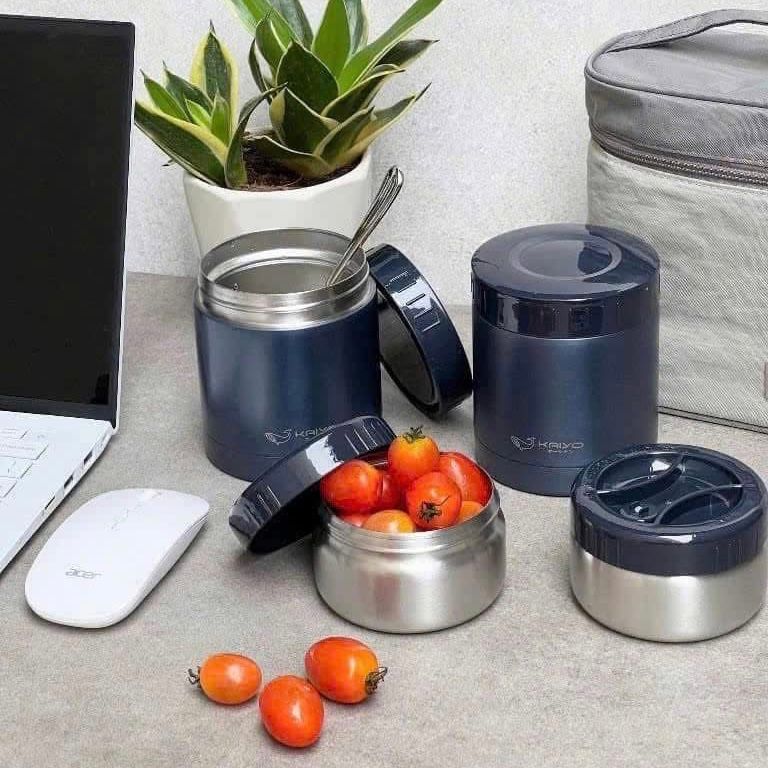 Bộ này hơn hẳn các loại khác là có tận 4 hộp nên tha hồ để các món, trong đó có 2 hộp giữ nhiệt lận. Bộ cũ e đang dùng có 1 hộp thôi nên nhiều lúc muốn để canh & cơm nóng không được. Khả năng giữ nhiệt thì tuyệt vời luôn, đến trưa cơm, canh vẫn nóng hổi nên 2 bạn nhỏ nhà em mang đi học trưa vẫn ăn cơm nóng như ở nhà luôn.