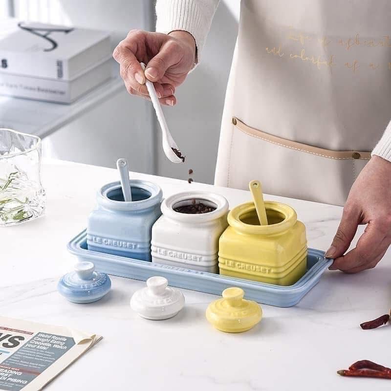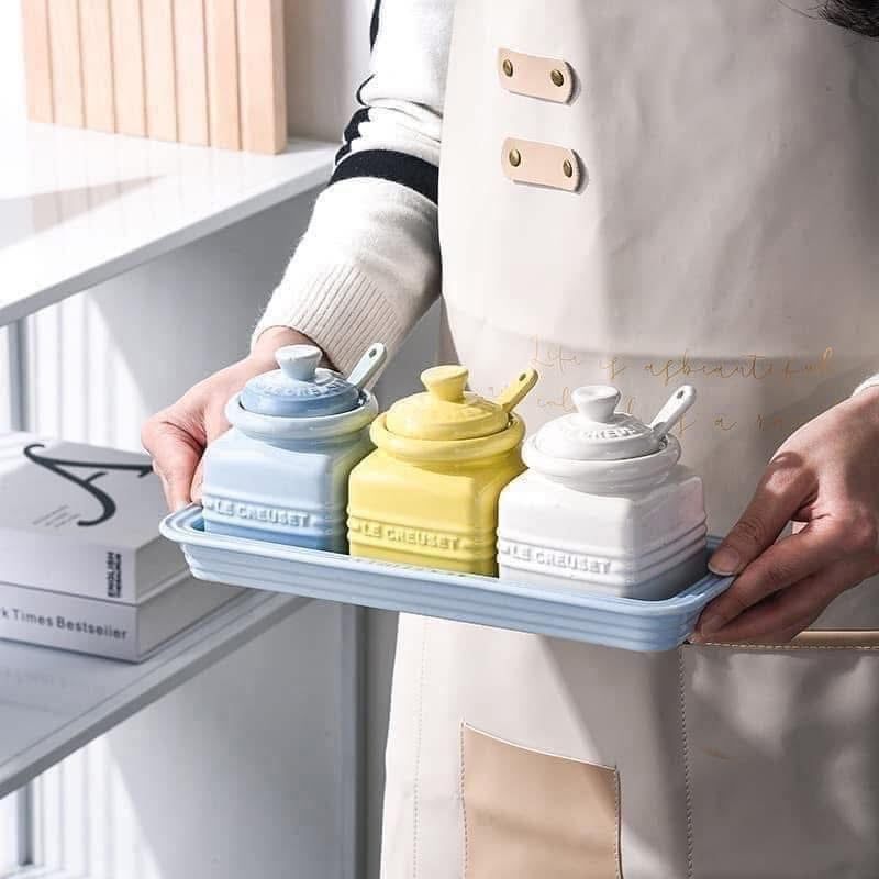 Bộ hũ đựng gia vị Lê Creuset kèm khay