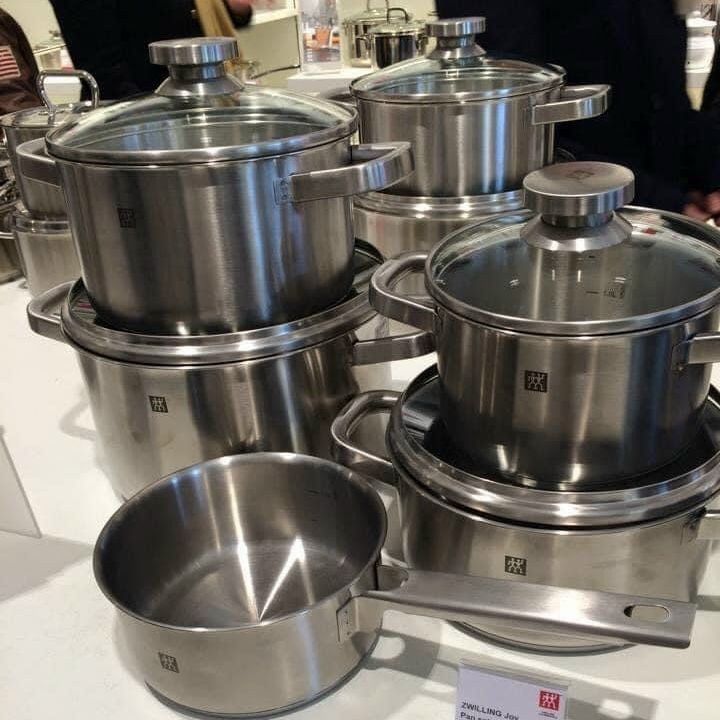 Bộ nồi Zwilling Joy được thiết kế truyền thống với nắp đậy bằng kính núm tròn, thiết kế quai vuông mang đậm phong cách nấu ăn cổ điển