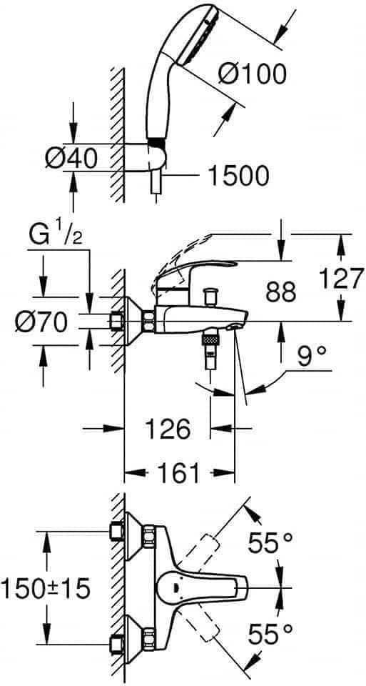 Bộ sen bồn tắm Grohe Eurosmart 3330220A