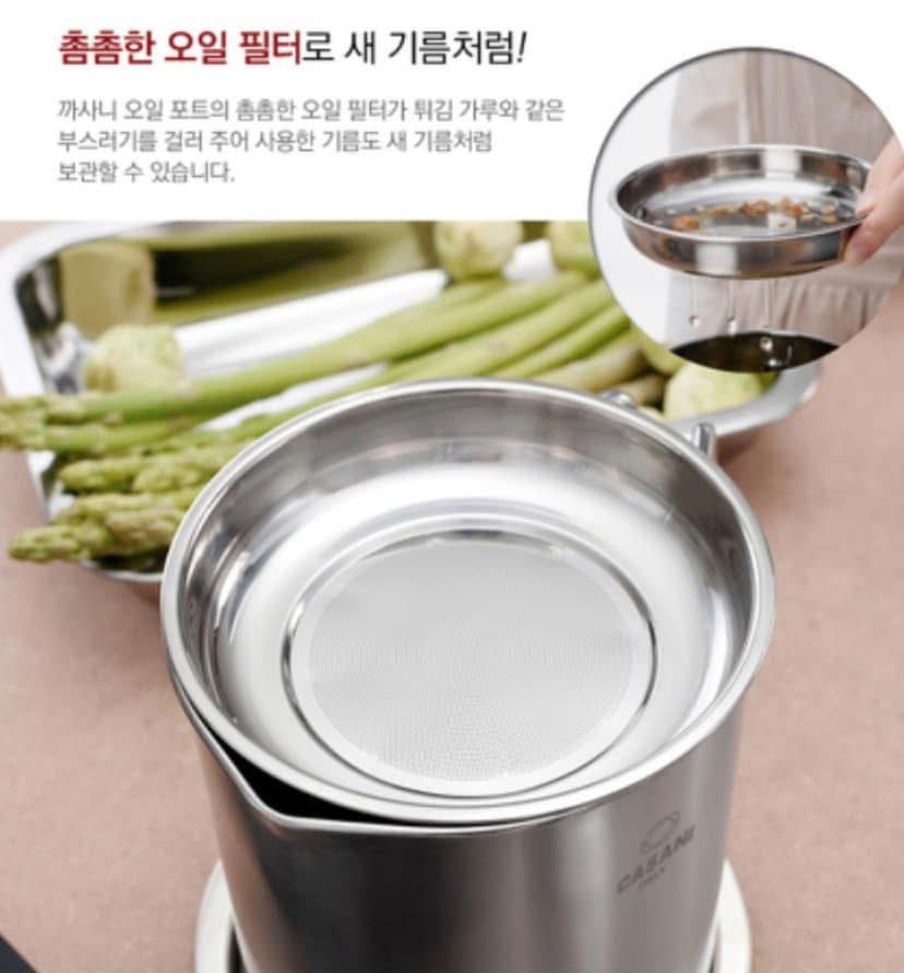 ✅ Lưới lọc đi kèm giúp lọc các mảnh vụn của đồ chiên, rán… một cách nhanh chóng và tiện lợi. Vì vậy dầu khi đựng trong Ca lọc Casani đều như dầu mới vậy :$
