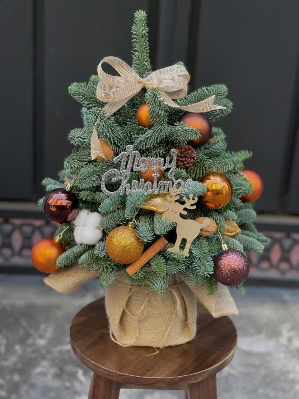 CÂY THÔNG mini ghép từ cành thông tươi- nhỏ gọn, giá cả hợp lý, phù hợp với không gian gia đình bạn Sẽ là một món quà vô cùng ý nghĩa cho bạn bè, người thân. Hoặc tự trang trí cho không gian của gia đình bạn thêm ấm cúng, sang trọng trong mùa giáng sinh này.