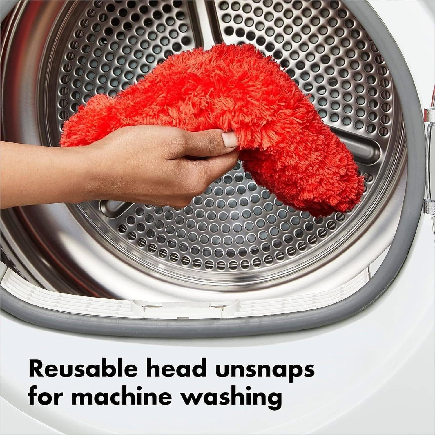 Khi bạn cần vươn xa hơn, chổi phủi bụi bằng sợi siêu nhỏ có thể kéo dài đến 1m37 chỉ bằng một cú xoay nhanh. Đầu chổi phủi bụi xoay 270° và khóa ở nhiều góc độ. Khóa ở vị trí thẳng đứng để vệ sinh lỗ thông hơi trên trần nhà và đồ chiếu sáng hoặc ở góc 90° để phủi bụi trên đỉnh giá sách và tủ.