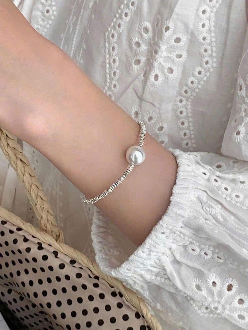 Mới tinh – mẫu dây cổ 1 viên ngọc trai to tròn xỏ lõi cáp nhật mix viên bi bạc rất đẹp mắt và độc nha.
