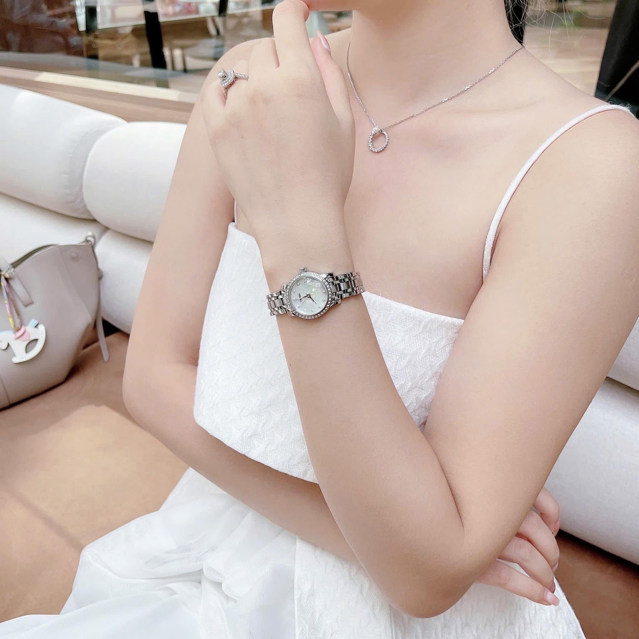 - Mặt khảm trai trắng, cọc số đính kim . Có ô lịch ngày tiện dụng
