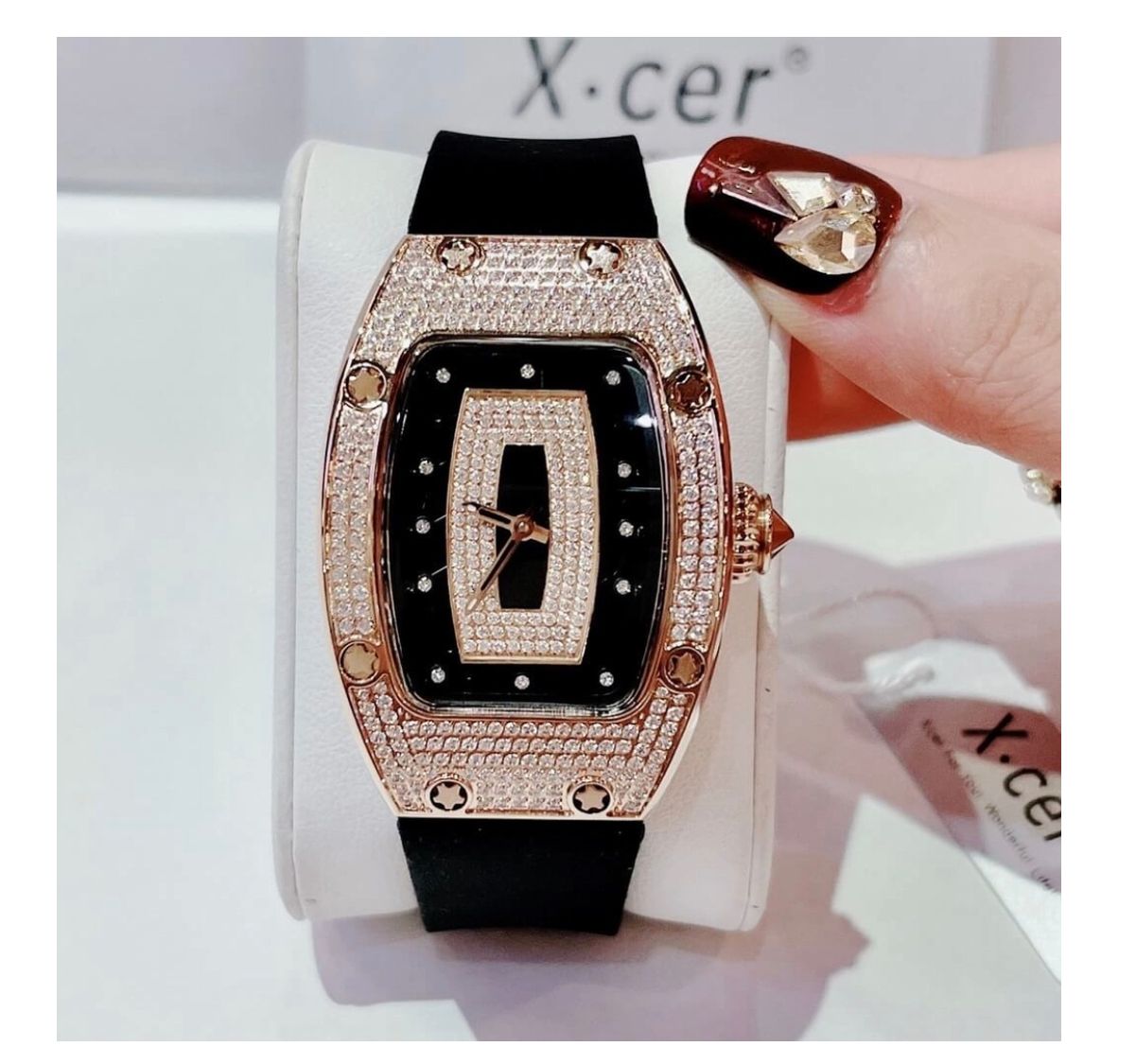 Xcer B6010 nổi bật với vẻ đẹp tinh tế từ chất liệu thép không gỉ 316L, tạo nên độ bền và sự sang trọng cho chiếc đồng hồ. Việc sử dụng đá Swarovski chất lượng cao không chỉ làm tăng thêm sự quý phái mà còn làm nổi bật vẻ đẹp độc đáo của mỗi chiếc đồng hồ.