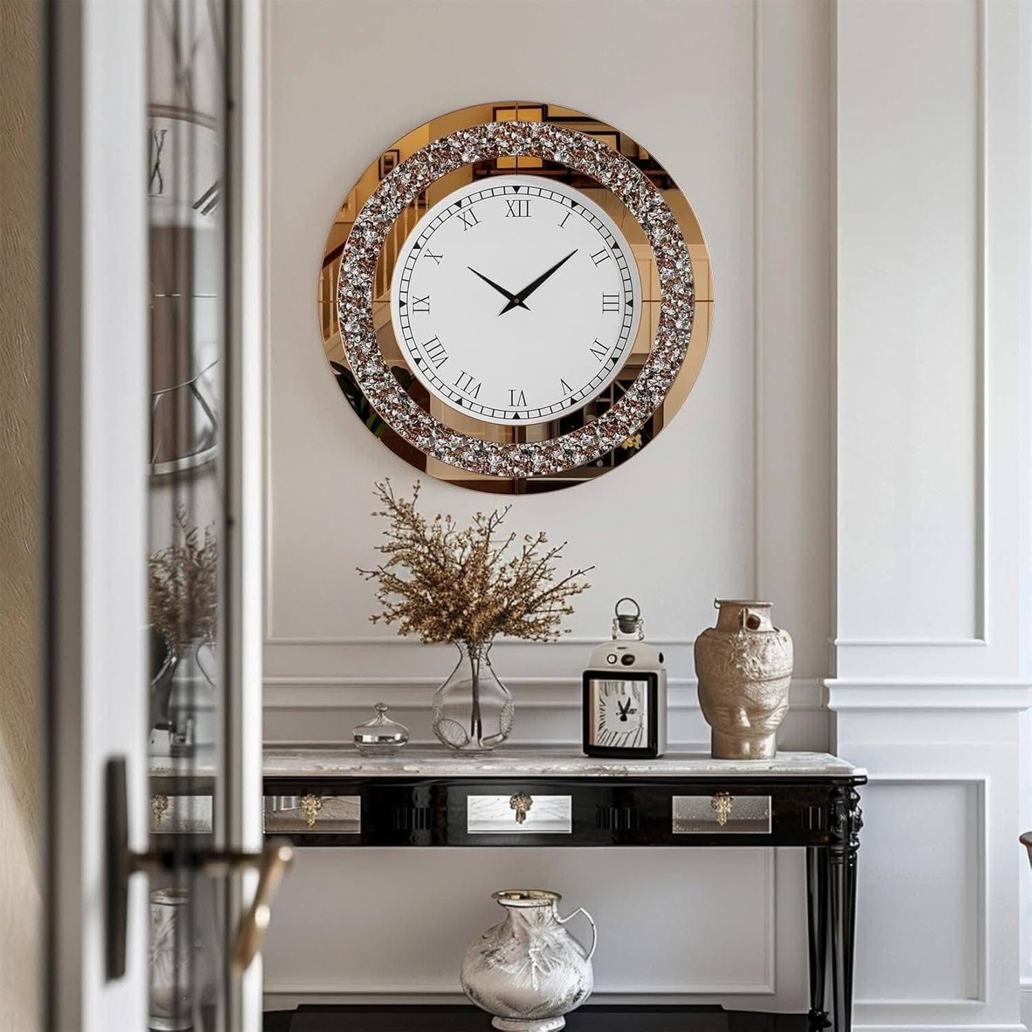 👉Thiết kế cao cấp nhất châu Âu với thủ công tinh xảo: đồng hồ gương kim cương nghiền nát sẽ bổ sung thêm yếu tố sống động lấp lánh lấp lánh cho ngôi nhà của bạn. Thời trang đẹp sang trọng lộng lẫy, gây ấn tượng với mọi người. Trang trí tốt nhà, văn phòng, phòng khách, phòng ngủ, nhà hàng, phòng ăn và những nơi khác.