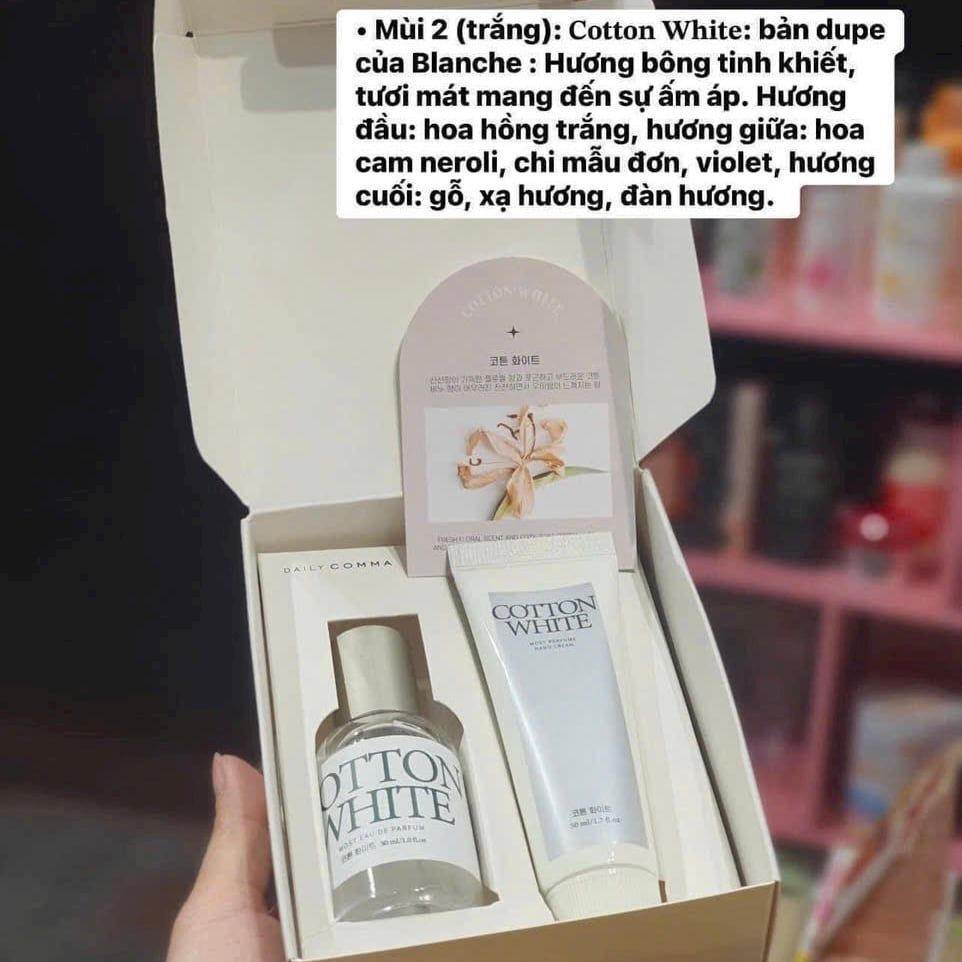 - Cotton White #trắng(mùi thơm tinh khiết như Blanche) - Kem dưỡng tay nước hoa Dailycomma 50ml - Kem tay quốc dân Hàn Quốc