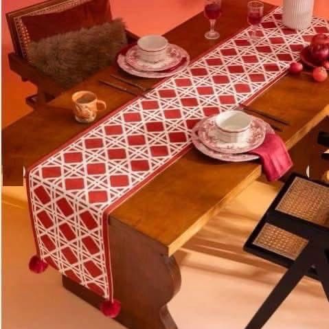 Khăn trải bàn Morocco mang sắc đỏ rộn ràng tô điểm cho bàn ăn, bàn trà ngày Tết