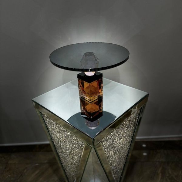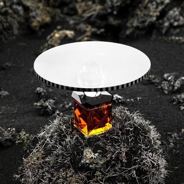 Savannah do Reflections Copenhagen sản xuất và ký tặng là một chiếc vương miện bánh hình tròn bằng pha lê được cấu trúc bởi nhiều yếu tố hình học được chạm khắc và hoàn thiện thủ công với màu đen, hồng, trong suốt và hổ phách.