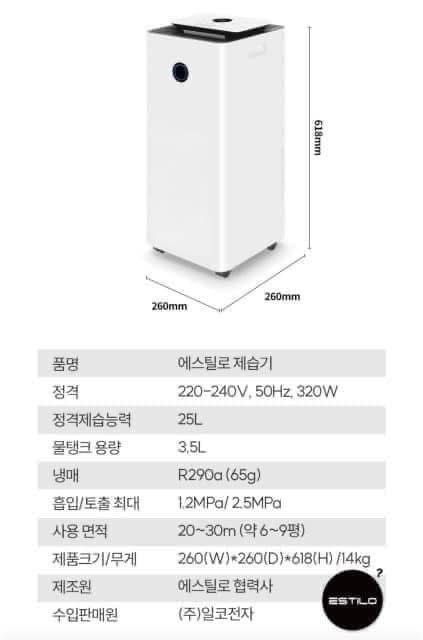 Máy hút ẩm lọc không khí Estilo 25 lít