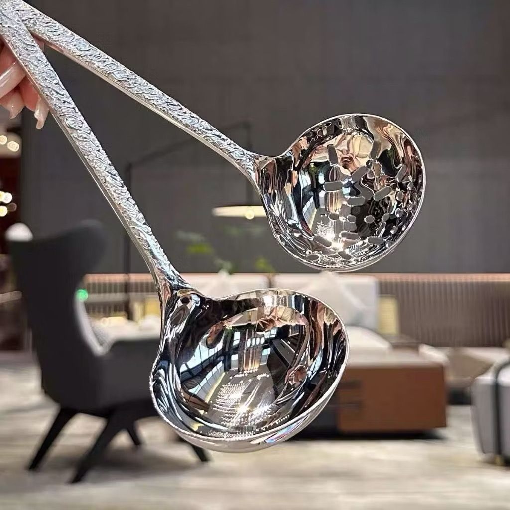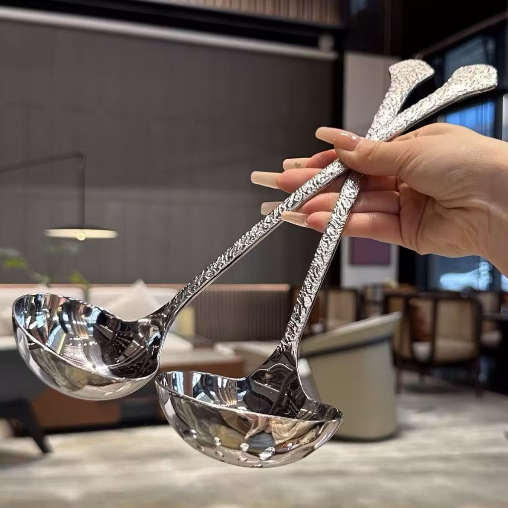 Muôi có tay cầm dập vân sang trọng, chống nóng, chống bỏng khi ăn lẩu, múc canh …