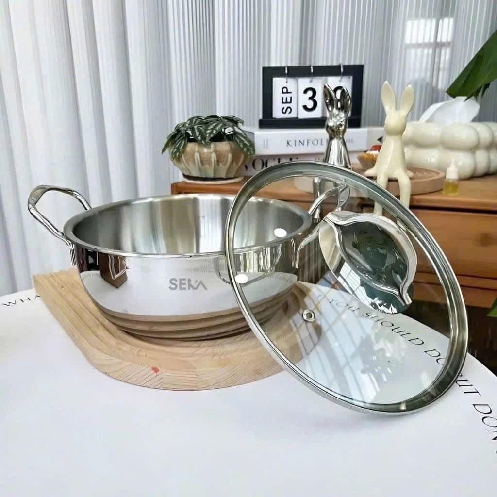 - Nồi chảo dày dặn, chất liệu inox 304 cao cấp, dùng cho mọi loại bếp.