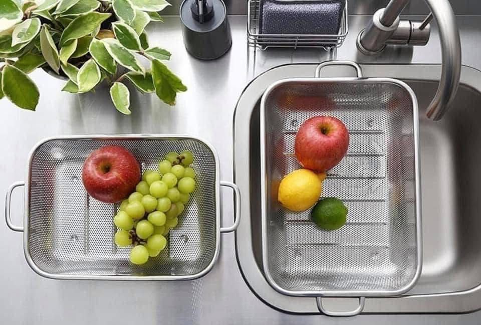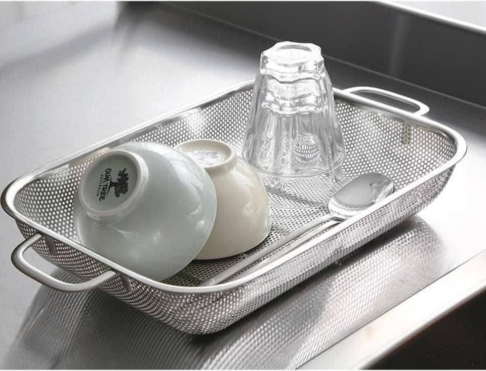 Siêu đa năng (Để chén bát, rửa rau củ…). Thiết kế có quai cầm rất tiện nâng hạ và gác lên chậu rửa