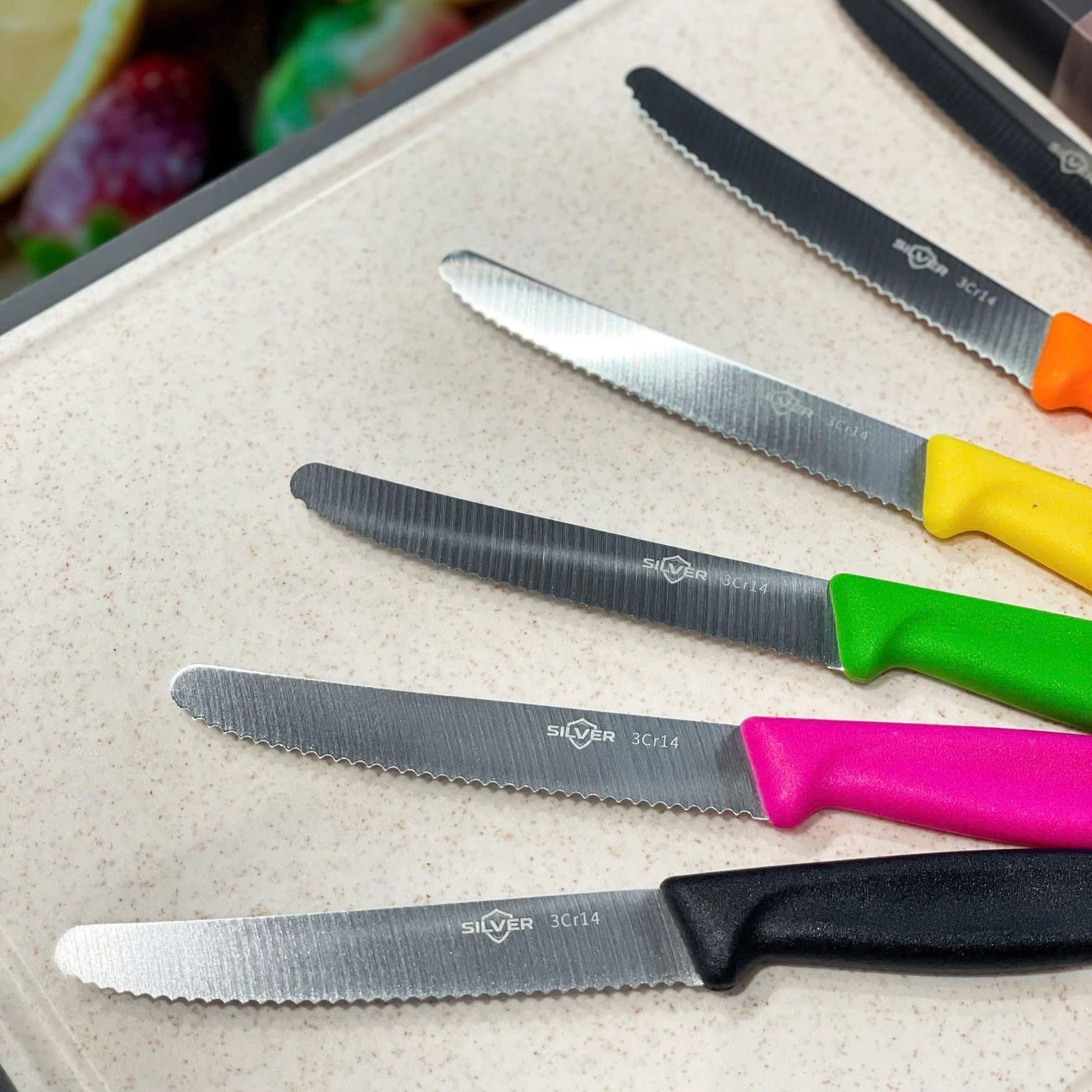 • Đặc biệt các loại quả vỏ dai như táo, cà chua thì hơn hẳn lưỡi dao phẳng. Bánh mì, sushi, cam táo, dứa dừa cân tất.....