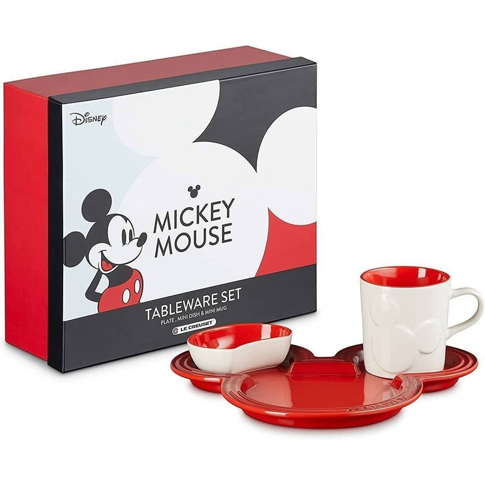 Bộ 3 món này kết hợp một chiếc đĩa hình chuột Mickey đơn giản với một chiếc đĩa nhỏ và một chiếc cốc hai màu phù điêu có hình chuột Mickey.