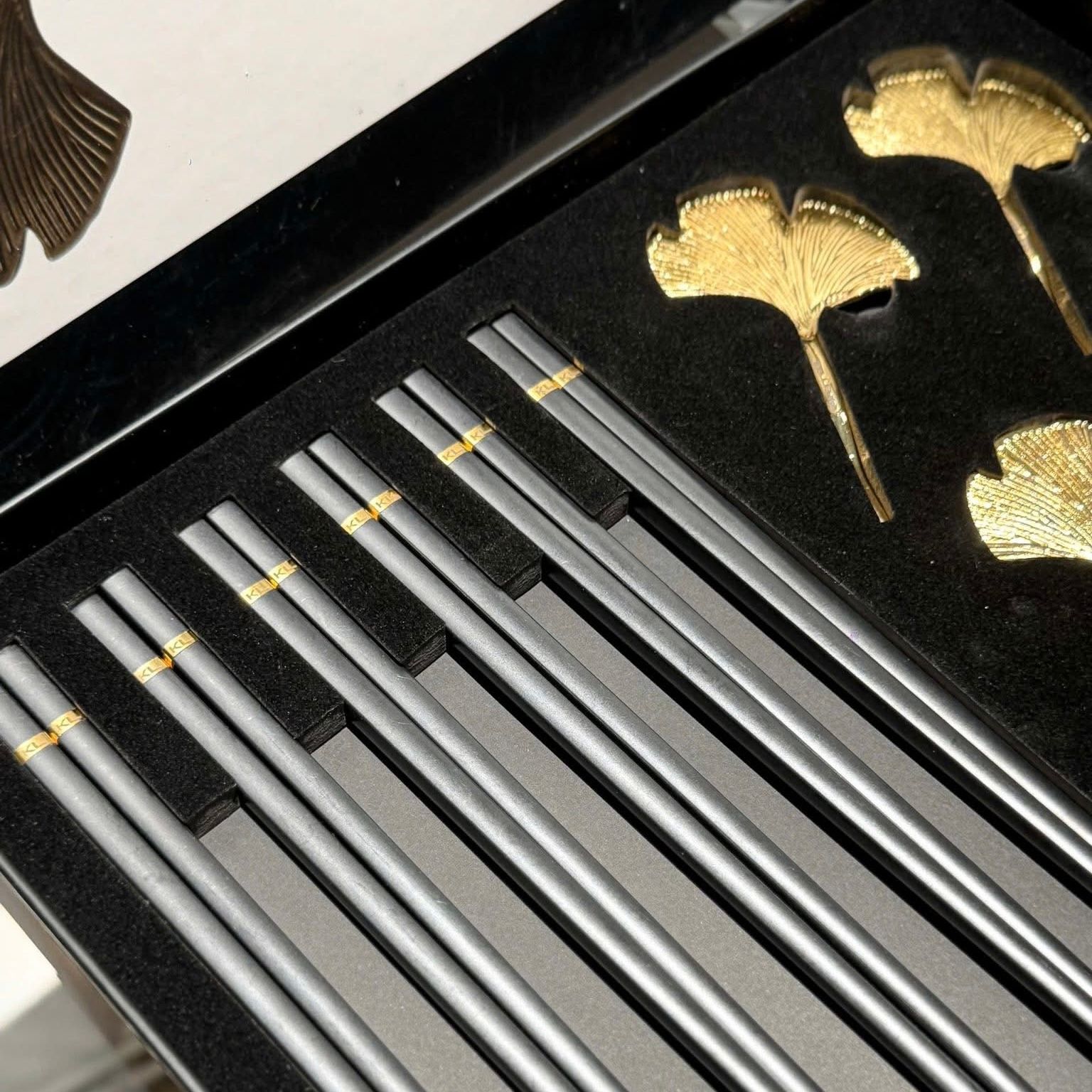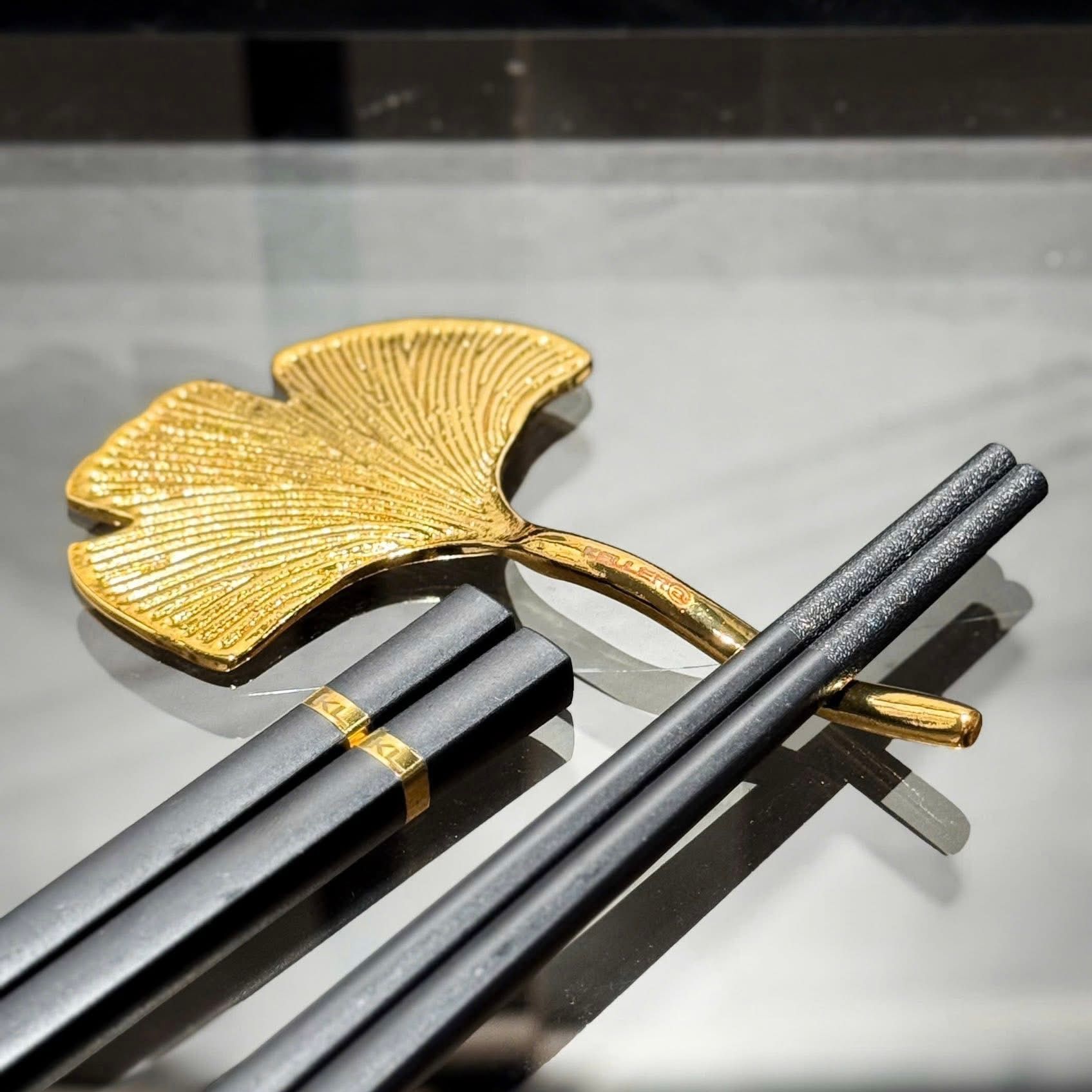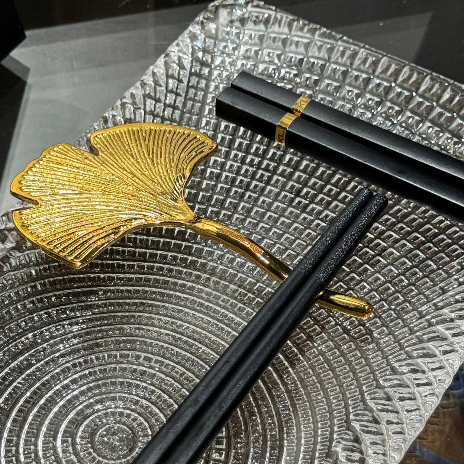 - 6 Gác đũa hình chiếc lá ngân hạnh màu vàng được thiết kế tinh xảo, nghệ thuật và đẹp mắt.