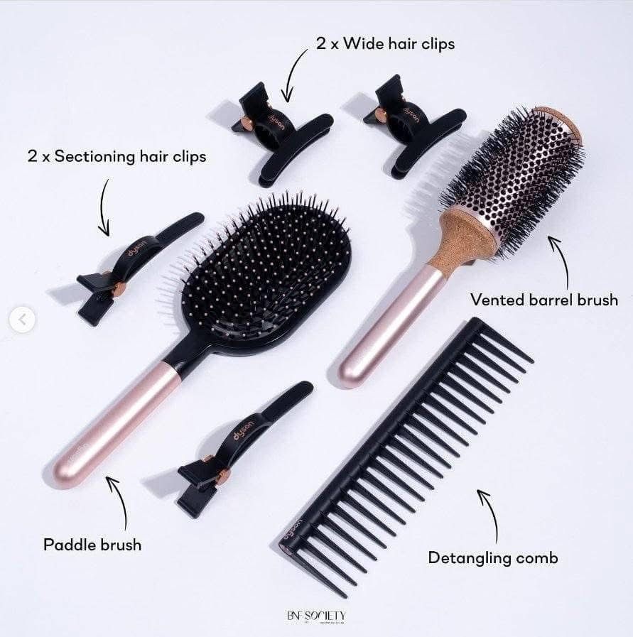 - Lược và bàn chải, cùng với kẹp tóc mới của Dyson được thiết kế công thái học để nhẹ nhàng với tóc.