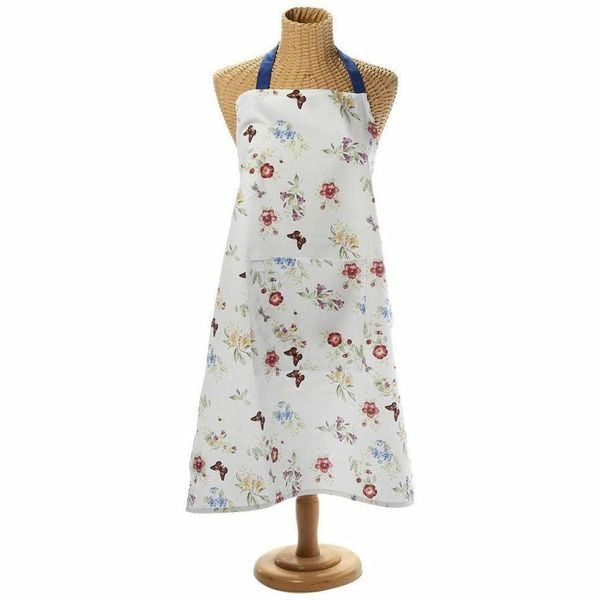 Tạp dề Butterfly Meadow với họa tiết bướm, chuồn chuồn và ong nghệt sống động trên những loại hoa rực rỡ sẽ là điểm nhấn sinh động cho không gian bếp của bạn.