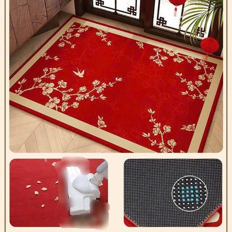 Sử dụng thảm đỏ với họa tiết thêu tinh tế đẹp mắt để chào đón khách dịp Tết đến, giúp ngôi nhà của bạn rực rỡ và không khí Tết ngập tràn.