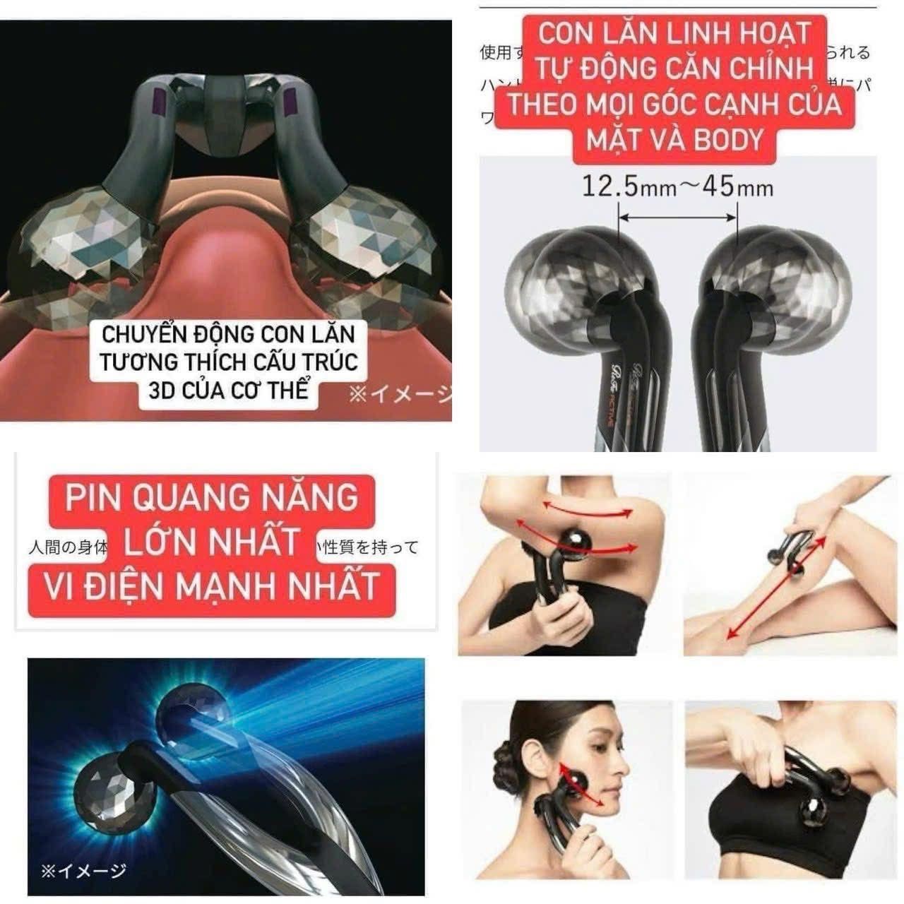 - Với cơ chế bi lăn như kiểu massage nhào nặn trên da thịt liên tục, con lăn có tác dụng làm giảm, tiêu hao lượng mỡ, thịt thừa trên mặt, làm căng da, xóa dần các vết nhăn, vết xệ da, giúp khuân mặt trở nên nhẹ nhàng, đẹp theo cách tự nhiên mà không cần phẫu thuật thẩm mỹ, hơn nữa mắt lấy sáng trên thân cây lăn sẽ hứng ánh sáng và tạo ra các dòng điện sinh học cực nhỏ trên bề mặt con lăn, dòng điện này có tác dụng ngăn ngừa sự lão hóa, làm trẻ da.