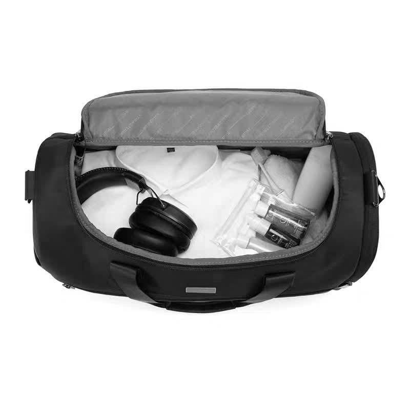 Túi đựng giày bên hông tích hợp có thể sử dụng khi túi được đóng lại. Có thể dùng làm túi đựng quần áo bẩn và khăn tắm