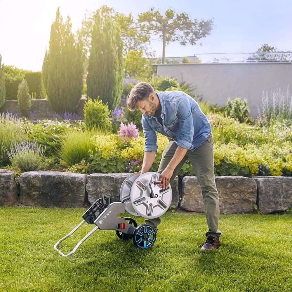 Xe tưới cây Gardena cuộn ống kim loại kèm 20m dây 18542-20